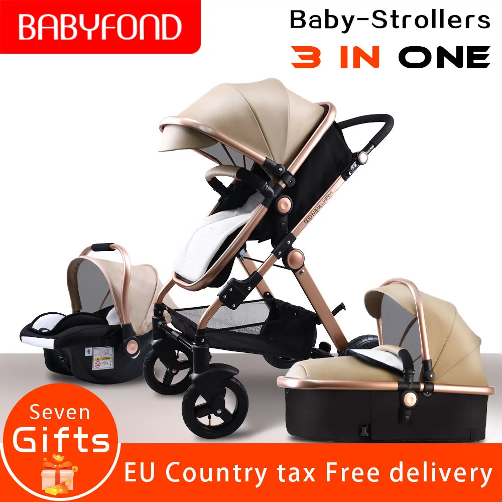 Special Offer for Babyfond 3 in 1 baby carriage PU waterproof material multi-color light luxury portable baby strolle